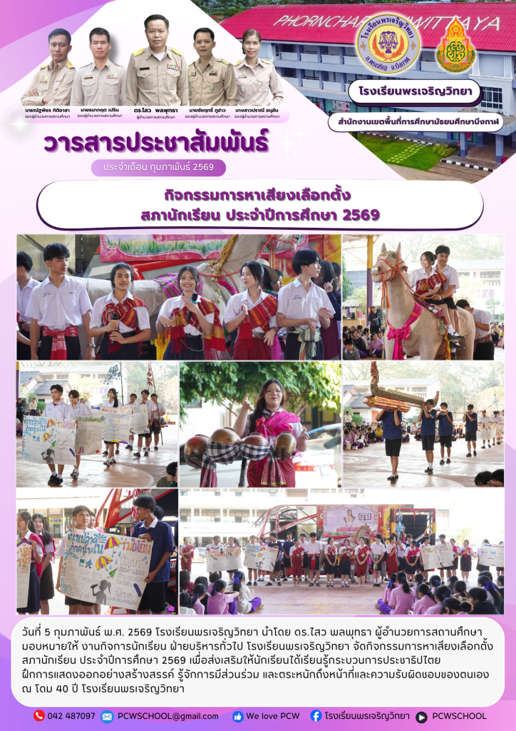 โรงเรียนพรเจริญวิทยา SMART PCW สำหรับครูเช็คชื่อ หน้าเสาธง รายวิชา สลิปเงินเดือน พฤติกรรม สำหรับผู้ปกครองตรวจสอบการเข้าแถวหน้าเสาธง เข้าเรียน พฤติกรรม สำหรับนักเรียนตรวจสอบการเข้าแถวหน้าเสาธง เข้าเรียน พฤติกรรม “พลังแห่งการศึกษา พบกับการพัฒนา AI ที่ช่วยเสริมศักยภาพครูและนักเรียน พรเจริญวิทยา” ดร.ไสว พลพุทธา 626442674_1357766392819404_6963886900803269462_nศิลปหัตถกรรม 73สีน้ำเงิน สีชมพู น่ารัNapp smart pcw (1)426082266_844179034178145_8074604429709139813_nทรงพรเจริญ (2)nogift ข่าวประชาสัมพันธ์ เนื่องจากมีนักเรียนถูกหลอกลวง อ่านต่อ อ่านต่อ ระเบียบวินัย โรงเรียนพรเจริญวิทยา ว่าด้วยการปฎิบัติตนของนักเรียน ปีการศึกษา 2568 อ่านต่อ ประกาศโรงเรียนพรเจริญวิทยา อ่านต่อ ประกาศผลการสอบคัดเลือกนักเรียน ประเภทห้องเรียนพิเศษ ชั้นมัธยมศึกษาปีที่ 1 (MEP) และชั้นมัธยมศึกษาปีที่ 4 (ESMT) อ่านต่อ มาตรการป้องกันและควบคุมบุหรี่ไฟฟ้า อ่านต่อ ข่าวจัดซื้อ-จัดจ้าง ประกาศโรงเรียนพรเจริญวิทยา ประกาศโรงเรียนพรเจริญวิทยา การประมูลน้ำปั่น ปี 2568 ประกาศโรงเรียนพรเจริญวิทยา การประมูลมินิมาร์ท ปี2568 ประกาศโรงเรียนพรเจริญวิทยา การประมูลขายอาหาร ปี2568 ประกาศโรงเรียนพรเจริญวิทยา การประมูลน้ำดื่ม ปี 2568 ประกาศโรงเรียนพรเจริญวิทยา การประมูลน้ำแข็ง ปี 2568 1 2 3 Next » ข่าวรับสมัคร รับสมัครนักเรียน ปีการศึกษา 2569 ประกาศโรงเรียนพรเจริญวิทยา เรื่อง ผลการสอบคัดเลือกลูกจ้างชั่วคราว ตำแหน่งนักการภารโรง ประกาศโรงเรียนพรเจริญวิทยา เรื่อง รับสมัครสอบคัดเลือกเพื่อเป็นลูกจ้างชั่วคราวรายเดือน ตำแหน่งนักการภารโรง ประกาศโรงเรียนพรเจริญวิทยา รับสมัครนักเรียน ปีการศึกษา 2568 ประกาศรับสมัครสอบคัดเลือกบุคคลเพื่อเป็นลูกจ้างชั่วคราวรายเดือน ตำแหน่ง แม่บ้าน 1 2 3 Next » จดหมายข่าวโรงเรียนพรเจริญวิทยา 1 2 3 4 Next »