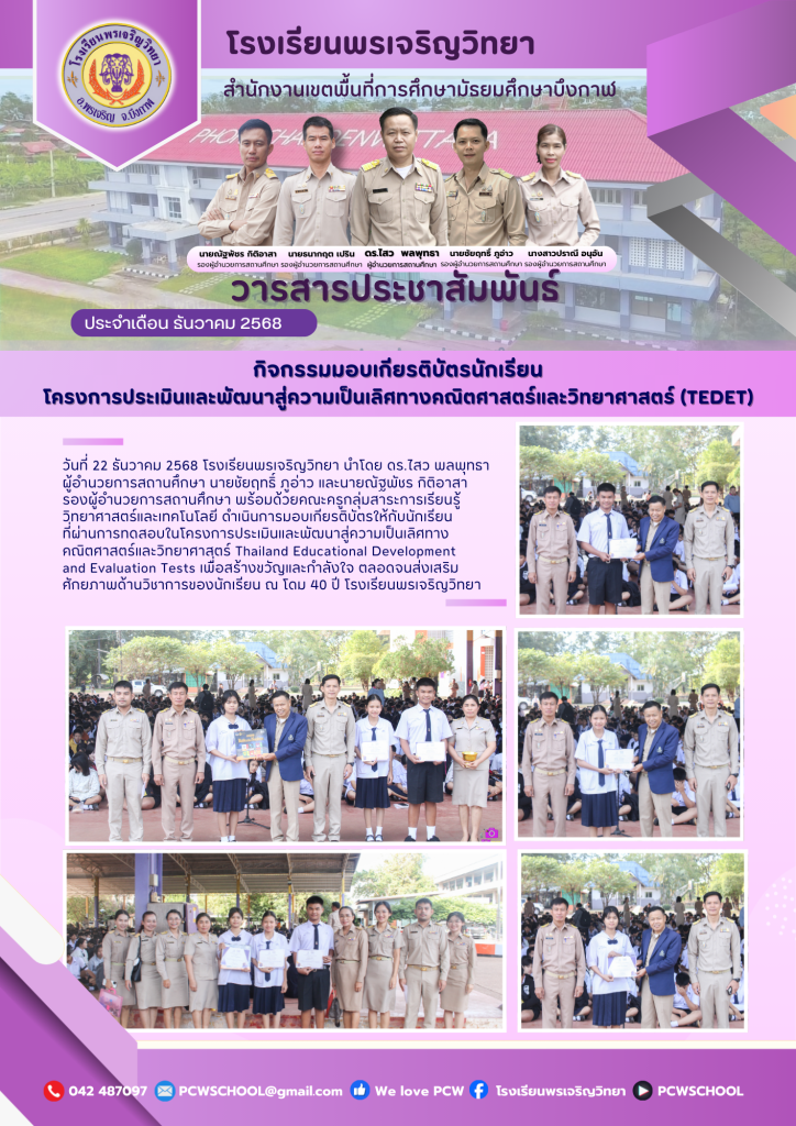จดหมายข่าวโรงเรียนพรเจริญวิทยา